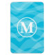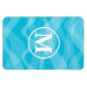 Monogram cruise magnet cabin door decoration with your initial letter in white in a circle and a blue and aqua ocean waves pattern in the background.