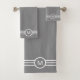 Elegant monogram and white stripes on grey Bath Towel Set. Monogram only on one side.