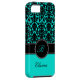 Monogram Aqua, Black, White Damask iPhone 5 Case