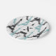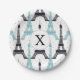 Monogram Aqua Chic Eiffel Tower Pattern Paper Plate