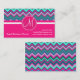 Monogram Aqua Teal Blue Pink Tribal Chevron Zigzag Business Card