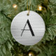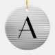Monogram Art Deco Silver Satin Stripes Ceramic Ornament
