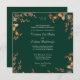 Dark forest evergreen with framework of Autumn Acorn Wreath. Emerald green background highlights the Autumn colours of tan in the acorn nuts. The wreath is offset from the invitation to create a border but not the spotlight of your invitation.