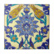 Monogram Azulejo Ceramic Style Vintage Ornament in blue, yellow and teal tones with floral theme. You can personalise it with your monogram or leave it blank