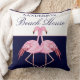 Monogram Beach House Teal Flamingos navy blue Thr Cushion