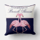 Monogram Beach House Teal navy blue Flamingos Throw Pillow,