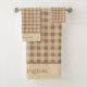 Monogram Beige Rust Buffalo Plaid Rustic Country Bath Towel Set