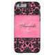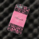 Monogrammed modern black and pink damask Vibe™ iPhone 6 case can be customised with your logo, name, initial, or other text. If you need assistance, email niteowlstudio@gmail.com.