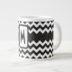 A stylish Jumbo Coffee or Soup Mug for you to personalise, with a pattern of trending Black and White zigzags or chevrons. If you prefer the mug without the inittal, you can easily customise it by deleting the text and moving the chevron pattern upwards until the plain text area disappears.