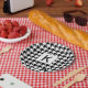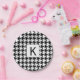 Monogrammed black and white houndstooth pattern paper plate. The design features a classic houndstooth pattern in black and white and your custom initial.