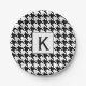 Monogram Black and White Houndstooth Pattetrn Paper Plate