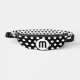 A simple modern initial monogram on a classic polka dot pattern fanny pack. Get this in black and white or any colour combination you like up to four different colours.