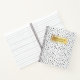 Stylish notebook for your home, office or school with modern black brush strokes polka dots pattern on a silver white background and your initials.