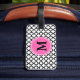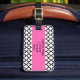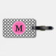 Monogrammed black and white quatrefoil pattern. Black quatrefoil pattern on white. On the other side the pattern is crossed by a hot pink band where you can add your information.