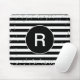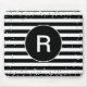 Monogram Black and White Striped Silver Confetti Mouse Pad