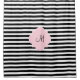 Monogram black and white striped shower curtain with pastel pink accent. The design features a black and white striped pattern and a pastel pink quatrefoil shape in the middle with your custom initial.