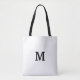 Minimalistic Black and White Tote Bag.Add your own custom initial letter. Perfect party favour gift idea for chic wedding, fancy Birthday, anniversary, bachelorette, engagement, girls weekend, bridal shower etc. Customisable background colour. Trendy accessories for women and girls. Make your own for bride, bridesmaids, maid of honour, flower girls, mother of the bride, matron of honour etc.