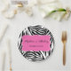 Monogrammed black and white zebra pattern wedding paper plates with hot pink accent.