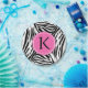 Monogrammed black and white zebra pattern. A hot pink circle where you can put your initial.