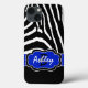 Monogrammed modern black, white and blue zebra print striped pattern Case-Mate Barely There™ iPad Air case can be customised with your logo, name, initials, or other text. If you need assistance, email niteowlstudio@gmail.com.
