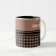 Monogram black brown houndstooth name Two-Tone coffee mug