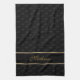 Gorgeous Monogram Black Charcoal Name Kitchen Towel. Adorned with monogram initial pattern in charcoal on black with bride and Groom's name in gold color in black, gray and faux gold border. We invite you to visit our Zazzle Store, Simon & Grace, for matching products and more. Please contact us if you require any assistance.
