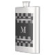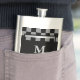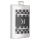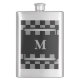 Masculine Black Checkered Personalized Monogrammed Stainless Steel Hip Flask.