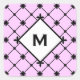 Add your own initial to this sticker with a simple small cross pattern in black on pink. Click Customise It to change fonts, background colour, add text and more, even save your design for later.