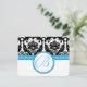 Black and White Damask with Teal Aqua Blue Trim Monogram RSVP Response Card