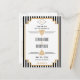 Monogrammed gold yellow, black and white art deco retro pattern wedding save the date postcard. A 1920's style sticker. The design features a gold yellow, black and white colour pallette and motifs inspired by the art deco style and a black and white striped pattern on the background.