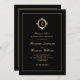 Set the tone for a sophisticated and memorable evening with this timeless black rehearsal dinner invitation, adorned with refined gold accents for a touch of understated glamour. Designed for couples who appreciate classic elegance, this invitation features personalised monograms within an ornate crest, making a regal and stylish statement.
