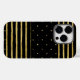 Monogram Black Gold Striped iPhone 14 Pro Covers with Trendy Black and Gold Dots. There are plenty of our warm, plush products available. Choose an iPhone 14 Pro Case for yourself or a friend from the selection of cases that are currently available.