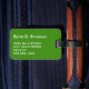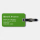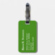 Luggage tag with black, green, and white barcode stripes, monogram initial(s)/name on a black stripe monogram frame, name, and address information on a green background. Personalise with your monogram initial(s)/name, name, and address information using the easy templates. Font colour, font style, font size, and green background colour are customisable.