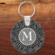 Monogram Black Grey Spirals - Mens Personalised Key Ring