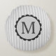 Monogram Black Grey White Scalloped Stripes Round Cushion
