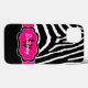 Monogrammed modern black, white and fuchsia pink zebra print striped pattern Case-Mate Barely There™ iPad Air case can be customised with your logo, name, initials, or other text. If you need assistance, email niteowlstudio@gmail.com.