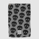 This novelty, goth design has a pattern made from black skulls, on a grey background. There is a monogram in matching colours, this version has a mid grey bevel that stands out better.
