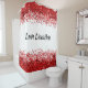 Transform your bathroom into a haven of warmth and style with our elegant monogram shower curtain. Featuring the heartfelt message "Love Lives Here" in bold black text, this shower curtain provides a striking contrast against a sophisticated white background. The top and bottom edges are adorned with a sparkling red glitter border, adding a touch of glamour and festivity to your space.