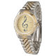 A stylish and elegant music design featuring a large treble clef in black on a golden coloured striped pattern background. Customise the text with your own monogram initials for a personalised musical design. Please note the satin raised effect of the treble clef and the golden colour are printed effects, there are no raised edges or gold foil on the image design.