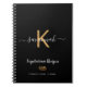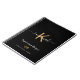 A cookbook notebook for a foodie and your favourite vegitarian recipes. Black background, white and golden text. Decorated with a small faux gold leaf. Personalise and add your monogram initial, name and text.