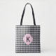 Monogram Black, White and Pastel Pink Houndstooth Tote Bag