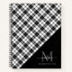Monogram Black White Buffalo Plaid Girly Script Notebook