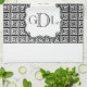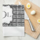 This is a pretty towel that has a black and white ancient Greek Key pattern with a monogram in a frame. Fill the frame with your own initials, name or text. Use the font, size and colour that you prefer.