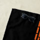 An abstract personalised black, white and orange striped pattern designed beach towel.