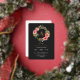 Monogram Black Wreath Botanical Christmas Party Foil Holiday Card