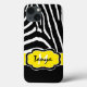 Monogrammed modern black, white and yellow zebra print striped pattern Case-Mate Barely There™ iPad Air case can be customised with your logo, name, initials, or other text. If you need assistance, email niteowlstudio@gmail.com.