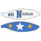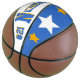 This is a full size basketball with two panels designed with a monogram name (large first letter) and uniform number, in popular college colours. This one is shown in Blue and Gold. The second panel has team colours with three stars. All text, art, and colours can be removed, or changed as desired. One panel can be left white for autographs, etc.