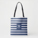 Monogram Blue and White Stripe Tote Bag