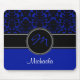 Monogram Blue Black White Damask Mousepad