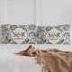 Pillowcases featuring a vintage monogram blue and cream damask floral design and the initials and wedding date of the bride and groom.